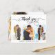 Budget, Elegant, Handschrift (3) Foto Collage Wedding Vielen Dank personalisiert günstige Low Budget DIN Karte. Stilvolle Hochzeit danke Ihnen Karte Vorlage mit (3) drei Foto auf der Vorderseite und (1) ein Foto auf der Rückseite. ***BEACHTE! *** HAUSHALTSPAPIER/FLYER IST DÜNN. *** AKTUALISIEREN SIE DAS PAPIER FÜR EIN THICKER-PAPIER. *** THICKER FLAT CARD: https://www.zazzle.com/chic_script_3_photo_collage_wedding_thank_you_card-256914686579727705 https://www.zazzle.com/modern_script_photo_collage_wedding_thank_you_card-256856280276835831 Mit dem Text "Danke" in einem Wirblen Schriftart mit Typografie-Schriftzeichen mit Schwarzweiß-Swashes. Personalisieren Sie Ihren Namen und danken Sie Ihnen Nachricht. Wenn Sie lieber Ihre Notiz handschreiben, löschen Sie einfach den Beispieltext, um mehr Platz zu machen. Wenn Sie Hilfe oder Matching Artikel benötigen, wenden Sie sich bitte an Designer!