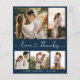 Budget, Modernes, elegantes Herz Schriftart Script Wedding 5 Foto Collage Erschwinglich Vielen Dank Flyer in Navy Blau und Weiß. Stilvolle, minimalistische Hochzeitskartenvorlage mit fünf (5) Gitter-Foto-Collage auf der Vorderseite und einem (1) Foto auf der Rückseite. "Liebe und Dank" Text in einer kursiven Hand geschrieben Kalligrafie niedliche Herz-Schriftart-Skript mit Swash-Schwanz. Personalisieren Sie mit Ihrem Namen und danke Ihnen Nachricht. Wenn Sie Hilfe oder Matching Artikel benötigen, wenden Sie sich bitte an Designer!