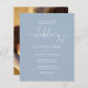 Diese elegante Einladung zur Hochzeit kann personalisiert werden mit Ihrem feierlichen Details Set in schicke Typografie auf staubblauem Hintergrund und Ihrem besonderen Foto auf der Rückseite. Entwickelt von Thisisnotme©