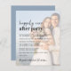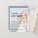 Moderne, staubblaue, preisgünstige Hochzeitsankündigung und Empfang-Einladung mit dem Foto "Happily Ever After Party" in einer Mischung aus zeitgenössischer Schrift und kühnen Schriften. Personalisieren Sie Ihre Nachricht und Einladung und fügen Sie Ihre Namen in ein signaturähnliches Skript ein. Auf der Rückseite sind Ihre Namen, Ihre Hochzeitsdaten und Ihre Empfang-Daten in einer einfachen, weißen Schrift zusammengefasst und durch ein Herz verbunden (wenn Ihre Hochzeitsdaten und Ihre Empfang anders sind, behalt Ihre Vornamen auf der obersten Zeile und Ihre beiden Daten durch das Herz auf einer zweiten Zeile getrennt).