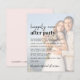 Moderne, hellrosafarbene Hochzeitsempfehlung mit Foto überlagert mit "Happily Ever After Party" in einer Mischung aus zeitgenössischer Schrift und kühnen Schriften. Personalisieren Sie Ihre Einladung und fügen Sie Ihre Namen in ein signaturähnliches Skript ein. Auf der Rückseite werden Ihre Namen, Hochzeit- und Empfang-Daten durch ein Herz miteinander verbunden (wenn Ihre Hochzeit- und Empfang-Daten anders sind, behalt Ihre Vornamen in der obersten Zeile und Ihre beiden Daten durch das Herz in einer zweiten Zeile getrennt).