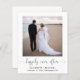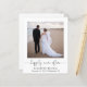 Einfache und schicke preisgünstige Unterkunft oder kleine Hochzeitsankündigung und Post-Hochzeitsempfang oder Party Einladung. Die Vorderseite zeigt Ihr Foto, "glücklich immer nachher" in einem stilvollen Skript mit Swashes und Ihren Vornamen, Hochzeitstag und Ort. Auf der anderen Seite, personalisieren Sie Ihre Hochzeitsankündigung und Empfang oder Party Einladung, geben Sie Ihre Website-Adresse, um einen QR-Code für Gäste zu scannen, um Ihre Hochzeitsfeier Fotos, alle Details und UAWG online und unterschreiben Sie Ihre verheirateten Namen in einem signaturähnlichen Skript.