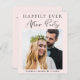 Budget pastellrosa Eleganz oder private Hochzeitsankündigung und Empfang Einladung mit Ihrem Foto, "Happily Ever After Party" in einfachen Typografie und eine schicke moderne Drehbuch und Ihre Namen und Hochzeitsdatum. Auf der anderen Seite, personalisieren Sie Ihre Ankündigung und Empfang-Details, geben Sie Ihre Website-Adresse, um einen QR-Code für Ihre Gäste zu erstellen, um nach weiteren Informationen zu suchen und online UAWG, und fügen Sie Ihre Namen in einem signaturähnlichen Skript.