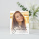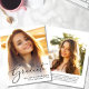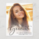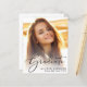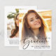 Eine budgetfreundliche Option, um die Leistungen Ihres Absolventen anzukündigen. Diese stilvolle Abschluss-Ankündigung zeigt ihr Lieblings-Foto mit dem "Graduate", überlagert in einem eleganten Skript. Fügen Sie ihren Namen, Schule und Klassenzimmer hinzu. Fügen Sie auf der Rückseite ein zusätzliches Foto und eine personalisierte Nachricht hinzu.
