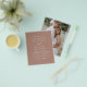 Das Budget Terra Cotta Brown Boho Wedding Modern Simple Wedding Spring oder Summer Foto on Back Wedding Invitations beinhaltet eine wunderschöne und elegante Schriftzeichen-Typografie mit einer modernen, einfachen und klassischen Farbe für die besondere Hochzeitstagsfeier.