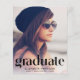 Diese stilvolle Abschluss-Ankündigung ist eine preisgünstige Option, um die Leistungen Ihres Absolventen anzukündigen. Sie beinhaltet das Foto Ihres Absolventen, "Graduate", geschrieben in einem trendigen Typ Typografie mit einzigartigen Linien und seinem Namen, Schule und Klassenjahr. Auf der Rückseite fügen Sie eine zusätzliche Foto und personalisierte Nachricht in schlichter weißer Typografie auf schwarzem Hintergrund hinzu.