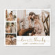 Budget, Elegant, Minimalistisch Gold und Weiß Hand Schriftschreiben Hochzeitsgitter 4 Foto Collage Dankeschön Karte. Stilvolle Hochzeitskarte mit vier (4) Foto vorne und einem Foto auf der Rückseite. Mit dem Text "Liebe und Dank" in einer kursiven Hand gezeichnet Typografie Herzskript Swash Schwanz Schriftart. Personalisieren Sie Ihren Namen und danken Sie Ihnen Nachricht. Wenn Sie Hilfe oder Match-Artikel benötigen, kontaktieren Sie mich bitte!