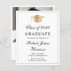 Elegante, preisgünstige Party Einladung mit weißem Uni-Abschluß mit Goldgradmütze, dem Namen und dem Klassenjahr des Absolventen in einer Kalligraphie-Schrift und ihrer Schule, Hauptfach und Ehren in klassischer Serif-Typografie. Fügen Sie auf der Rückseite ein Foto hinzu und personalisieren Sie Ihre Party-Details. Dieses halbglänzende Foto-Papier ähnelt dem herkömmlichen Papier, es ist auch eine größere Kartenversion verfügbar (Nachricht für den Link).