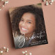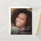 Eine budgetfreundliche Option, um die Leistungen Ihres Absolventen anzukündigen. Diese elegante Abschluss-Ankündigung zeigt sein Lieblings-Foto mit dem "Graduate", das in einem stilvollen, weißen Drehbuch geschrieben ist. Fügen Sie unten Ihren Namen, die Schule und das Klassenzimmer hinzu.