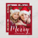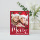 Elegante, preisgünstige, saisonale rote Urlaubskarte mit Ihrem Foto, "Merry" in einem stilvollen weißen Drehbuch und Ihrem Namen und dem Jahr. Auf der Rückseite, fügen Sie drei zusätzliche Fotos und eine personalisierte saisonale Begrüßung.