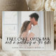 Unsere Hochzeit speichern das Datum Postkarte mit einem modernen Handschrift Pinsel Skript auf Ihrer Verlobung Foto.
