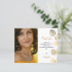 Ein modernes und elegantes Foto dank Ihrer Karte. Ein eleganter weißer Hintergrund mit goldenem Eukalyptusblättern. Personalisieren und fügen Sie Ihr Foto, Ihr Dankeschön Notiz und Name. Zurück: weißer Hintergrund.