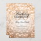 Elegantes "Birthday Party Invitation" Design mit Funkelleuchten in Kupfer mit individuellem Text.