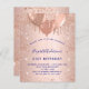 Für einen eleganten 21. Geburtstag (oder jedes Alter). Eine Rose Gold Imitate metallisch aussehend Hintergrund. Dekoriert mit Rose Gold, rosa Imitat Glitzer Tropfen, Farbe Tropfen Look und Ballons. Personalisieren und fügen Sie einen Namen, Alter 21 und Party-Details. Der Name wird mit einem handgeschriebenen Stilskript geschrieben. Marinebrillbuchstaben