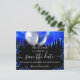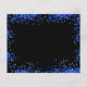 Schwarzer Hintergrund mit königsblauen Tropfen, Konfetti und Ballons. Personalisieren und fügen Sie Datum und Name/Alter hinzu. Der Text: Save the Date ist mit einem großen angesagten, handgeschriebenen Stilskript geschrieben.