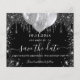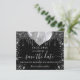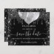 Eine gmädchenhafte und trendige Save the Date-Karte für eine 18. Geburtstagsfeier (oder jedes Alter). Ein schwarzer Hintergrund mit Imitaten verziert mit Tropfen, Glitzern und Ballons aus Silber-Glitzer. Personalisieren und fügen Sie Datum und Name/Alter hinzu. Der Text: Save the Date ist mit einem großen angesagten, handgeschriebenen Stilskript geschrieben.