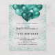 Für einen eleganten 18. Geburtstag (oder jedes Alter). Ein Imitat silber metallisch aussehender Hintergrund. Dekoriert mit aquamarinen Imitaten Glitzer Staub und Ballons. Personalisieren und fügen Sie Namen, Alter und Party Details hinzu. Der Name wird mit einem handgeschriebenen Stilskript geschrieben