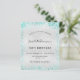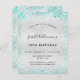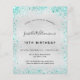 Für einen eleganten 18. Geburtstag (oder jedes Alter). Ein Imitat silber metallisch aussehender Hintergrund. Dekoriert mit aquamarinen Imitaten Glitzer Staub. Personalisieren und fügen Sie Namen, Alter und Party Details hinzu. Der Name wird mit einem handgeschriebenen Stilskript geschrieben