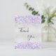 Ein weiblicher und eleganter Geburtstag Dankeschön Karte. Ein Imitat silber metallisch aussehende Hintergrundfarbe. Mit lila, violetten Imitaten Glitzer Staub. Auf der Vorderseite große Hand Schrift und der Text: Danke. Zurück: Personalisieren Sie Ihre Dankeschön Notiz und Name. Der Name ist mit einem modernen handgeschriebenen Stilskript geschrieben.