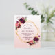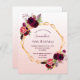 Im Vordergrund: Eine Einladung zu einer 40. (oder einem beliebigen Alter) Geburtstagsfeier. Eine elegante und trendige Rose Gold, weißer Farbverlauf mit einem goldenen Rahmen in Imitaten. Die Einrichtung besteht aus dunklen, lila und bordeauxfarbenen Blume, Rose und Boho-Federn. Vorlagen für einen Namen und Party Details. Der Name wird mit einem handgeschriebenen Stilskript geschrieben, lila Buchstaben. Zurück: Rose Gold, Weißgradientenhintergrund.