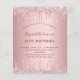 Eine moderne, stilvolle und glamouröse Einladung für die 10. Geburtstagsfeier eines Mädchens (oder jedes Alters). Eine staubige Rose, rosa Imitate metallisch aussehend Hintergrund mit Imitaten Glitzer Tropfen, Farbe Tropfen Aussehen. Der Name ist mit einer modernen dunklen Rose goldfarbenen Handschrift geschrieben, die als Stilschrift dient. Personalisieren und fügen Sie einen Namen, Alter und Ihre Party-Details.
