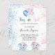 Für ein Geschlecht zeigen Babydusche. Ein schick weißer Hintergrund. Glitzer und Blau, rosa und weiße Ballons und Staub aus Glitzer. Ein Babyelefant und ein gabeliger Elefant. Personalisieren und fügen Sie den Namen der Mutter zu sein und Party-Details. Der Name und der Text: Junge oder Mädchen werden mit einem handgeschriebenen Stift geschrieben