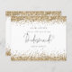 Budget Gold Glitzer Script Bridesmaid Anfrage. Eine preisgünstige Alternative 4,5" x 5,6". Erhältlich in einem SEMI GLOSS 110 lb CARD STOCK, die Standardoption (dicker für Einladungen) Bridesmaid ist in einem stilvollen Set-Skript ist in der Mitte. Eine Grenze von Imitaten Glitzer in Gold ist oben und unten auf jeder Seite.