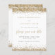 Gold Glitzer Borders Script Hochzeit speichern das Datum. Ein Preis SMALLER 4,5" x 5,6" Alternative. Erhältlich in einem SEMI GLOSS 110lb CARD STOCK, welches die Standardoption ist (empfohlen für Einladungen), ODER einem SATIN FINISH 80lb THINNER PAPER STOCK (ideal für Gehäuse). Umschläge sind optional und etwas größer als die Kartengröße. Gold Imitate Glitzer am oberen und unteren Rand und ein informelles Set Skript für Rett Unser Datum. Personalisieren Sie die Erholung des Textes einfach auf Ihre Daten.