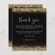 Gold Glitzer Quinceañera Party Danke Black. Ein Preis SMALLER 4,5" x 5,6" Alternative. Erhältlich in einem SEMI-GLOSS 110 lb CARD STOCK, der die Standardoption (dicker für Einladungen) ist, ODER einem SATIN FINISH 80 lb THINNER PAPER STOCK (ideal für Gehäuse). Klassischer Stil mit Rändern von Imitaten Gold Glitzer sind oben und unten auf jeder Seite, und Dankeschön Sie ist in einem Set Handschrift Stil Skript in der Koordinierung von Gold. Personalisieren Sie die Erholung des Textes einfach. Sie können Text- und Hintergrundfarben auch über die Option Weitere Einstellungen ändern.