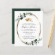 Günstige Golden Cap und Tassel Eukalyptus Graduation Party Einladung... Unsere luxuriöse botanische Graduiertenparty lädt mit einem goldmetallischen ovalen Rahmen ein, der mit staubigen grünen und smaragdfarbenen Eukalyptus-Blätter geschmückt ist und einen natürlichen Rahmen für den Einladungstext im Inneren schafft. Im Rahmen befindet sich eine metallische goldene Kappe und eine Tassel, gefolgt von dem Einladungstext in Sans Serif und Script Typografie. Der Hintergrund der Karte ist reich dunkelgrün aus den Eukalyptus-Blätter selbst. Alle Texte können auf der Personalisierungsvorlage leicht überarbeitet werden.