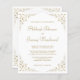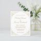 Diese elegante Vintag-inspirierte formelle Hochzeitseinladung enthält den Text in goldfarbenem Drehbuch und Serif-Schriftart, gerahmt von einem zarten Vintagen Goldrebe-Motiv. Der Rahmen wird auf der Rückseite wiederholt. Die Rückseite bietet Platz für Hochzeitsdetails, zusammen mit einem QR-Code können Gäste scannen, um Ihre Website und UAWG zu besuchen, was die Kosten für den Druck und Versand separater RSVP-Karten rette.
