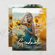 Eine Budget Gold Script Foto Graduation Party Einladung mit handgeschriebenem Schriftart voll blued portrait Foto auf der Vorderseite mit Namen und Abschluss Details. Die Rückseite hat ein zweites Foto und zusätzliche Party Details. Klicken Sie auf die Schaltfläche Bearbeiten, um dieses Design anzupassen.