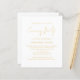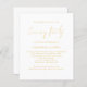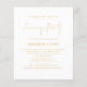 Eine günstige BUDGET-Alternative für eine kleinere Größe von 4,5 x 5,6 Zoll, die ein Gewicht von 110 lbs hat, die ähnlich dick ist wie eine Postkarte (sie ist jedoch nicht als Postkarte geeignet). BITTE BEACHTEN SIE, DASS ES EINE pro Blatt gibt. Budget Gold Script QR Abend Party Einladung Hochzeit. Fügen Sie Ihren QR-Code zu Ihrer Hochzeitswebsite auf der Rückseite hinzu, damit Ihre Gäste alle Details online sehen können, ohne separate Gehäuse benötigen zu müssen. Set Typografie in Gold für die Hauptüberschrift Abend Party ergänzt die Erholung des Textes, die Sie leicht personalisieren können.