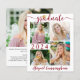 Eine preisgünstige, moderne Rot-Weiß-Abschluss-Ankündigung, die auf 4,5x5,6"-Leichtpapier gedruckt wurde, statt auf einem Karton mit Kalligrafiegrift und einem Imitat mit metallischer Goldfolienkappe und personalisiert mit 5 Fotos (eine Foto-Collage von vier Bildern vorne und einer auf der Rückseite). Das Unterrichtsjahr ist für weitere Jahre bearbeitbar. Auf der Rückseite finden Sie ein vollblütiges Foto und ein optionales Textfeld mit Details zu Ihrem Absolventen. Ideal für konservative Budgets und/oder Handarbeit. Umschläge separat auf der Bestellseite verkauft. HILFE: Für Hilfe bei der Modifikation/Personalisierung des Designs, bei Farbänderungen, bei der Übertragung des Designs auf ein anderes Produkt oder wenn Sie die Dinge koordinieren möchten, wenden Sie sich bitte an den Designer, BEVOR Sie über Zazzle Chat oder makeitaboutyoustore@gmail.com bestellen.