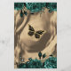 Budget Elegante Emerald Green Gold Floral Butterflies Quinceañera Quince Einladung