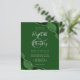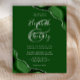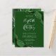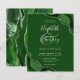 A hunter green watercolor agate design trimmed with faux silver glitter appears in two corners of this elegant design. Personalize it with the couple's names in silver gray handwriting script over a large green ampersand. Add the wedding details in silver gray copperplate and italic fonts on a green background. The reverse side features a matching green and silver agate design.
