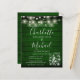 Eine stilvolle rustikale Einladung zur Hochzeit mit hübschen Saitenleuchten, Maurerkirschen, prächtigen Stilbezeichnungen und schicker Typografie auf grünem rustikalem Holzfußboden. Entwickelt von Thisisnotme©