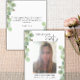 Mit unserer Budget Greenery Foto Beerdigung Dankeschön Card zum Ausdruck bringen Sie Ihre herzliche Dankbarkeit während einer Zeit des Verlustes. Diese elegante Karte soll Freunden und Familien, die während einer schwierigen Zeit ihre Unterstützung und ihr Beileid angeboten haben, Ihre Wertschätzung vermitteln. Die Karte zeigt ein zartes grünes Motiv, das Ihnen eine ruhige und schöne Art und Weise bietet, denjenigen zu danken, die Sie unterstützt haben. Die sanften, sanften grünen Farben und die raffinierten Grünfolienabbildungen schaffen eine beruhigende und respektvolle Ästhetik. Im Inneren finden Sie eine durchdachte Dankesbotschaft mit viel Platz, um Ihre personalisierte Note hinzuzufügen. Die Botschaft ist so konzipiert, dass sie Ihnen für die Unterstützung und das Beileid, die Sie erhalten haben, aufrichtig danken und Ihnen Anerkennung zollen kann.
