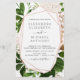 Budget Greenery Botanische und Rose Gold Geometric Watercolor Frühjahr Einladungen auf Weißen Hintergrund - beinhaltet schöne und elegante Schrift Typografie mit modernen botanischen Blätter und Grün für die besondere Hochzeitstagsfeier.