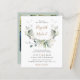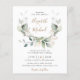 Elegante, preisgünstige Einladung zum Hochzeitsfest mit Wasserfarben von Salbei-grüner Eukalyptus-Vegetation, Lorbeerkronen-Blätter mit Goldakzenten, moderner Softgrau-Typografie und Ihren Namen in einem stilvollen Goldskript. Auf der anderen Seite laden Sie Ihr Lieblings-Verlobung-Foto hoch und geben Sie Ihre Website-Adresse ein, um einen QR-Code für Ihre Gäste zu erstellen, um online zu scannen und zusätzliche Hochzeitsdetails wie Anleitungen und Unterkünfte zu erhalten.