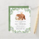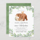 Budget Grün Woodland Tiere Baby Dusche Einladung. Eine geschlechtsneutrale Babydusche mit handbemalten Waldtierfreunden: Hirschengrünn, Hasen, Eule, Bärenkuppe und Eichhörnchen, die von einer Wasserfarbenlandschaft gerahmt sind. Mit einer schicken, rustikalen Schriftzeichen-Typografie auf weißem Hintergrund. Ideal für Baby, Baby, geschlechtsneutral oder geschlechtsneutral, Dusche.