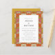 Bringen Sie ein paar fröhliche 70er-Villen zu Ihrer Veranstaltung mit diesem lustigen Retro inspirierte farbenfrohe helle Orange, Rosa und Gelb Budget Hochzeitseinladung.