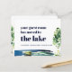 Wenn Sie zu einem See- oder Uferpromenade-Zuhause umziehen, erzählt diese preisgünstige neue Adresskarte die Geschichte... mit einem Aquarellsee, einem Dock und einem Seebaum. Der Text auf der Vorderseite ist in fett dunkelblauer Typografie (die Farbe des Wassers) gehalten und lautet: "Ihr Zimmer ist zum See gezogen." Sie können "See" in "Strand" ändern und den gleichen Effekt mit Ihrem Text erhalten. Alle Beispieltexte auf Vorder- und Rückseite der Karte können mit Ihren persönlichen Gruß- und Kontaktdaten leicht überarbeitet werden. Wir haben den Umschlag in Ihren Einkauf aufgenommen, aber wenn Sie es vorziehen, Ihren eigenen Umschlag einzureichen, ändern Sie einfach Ihre Präferenz in "none", wo es "Wählen Sie eine Umschlagoption" steht.