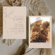 Minimalistische botanische Blumenlinie Kunst Terrakotta (Terrakotta) und Neutral Brown Earth Tone Boho Bohemisch Sketch Hochzeitsfeier (Herbst), Winter, Frühling oder Sommer mit Foto- oder Bildeinladungen - beinhaltet eine wunderschöne und elegante Schriftzeichen-Typografie für die besondere Hochzeitstagsfeier.