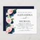 Budget Navy Blue and Blush Pink Moderne und elegante florale Watercolor Frühjahrsfeiern Einladungen - beinhaltet eine schöne und elegante Schriftzeichen-Typografie mit modernen botanischen Blume und Grün für die besondere Hochzeitstagsfeier.