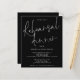 Ein Preis SMALLER 4,5" x 5,6" Alternative. Erhältlich in einem SEMI-GLOSS 110 lb CARD STOCK, der die Standardoption (dicker für Einladungen) ist, ODER einem SATIN FINISH 80 lb THINNER PAPER STOCK (ideal für Gehäuse). Umschläge sind optional und etwas größer als die Kartengröße. Dieses moderne Design im klassischen Schwarz-Weiß-Design bietet elegantes Set-Script für Probe Dinner und die Erholung der Typografie, die Sie leicht personalisieren können. Sie können Text- und Hintergrundfarben auf beiden Seiten auch ändern, wenn Sie dies wünschen, indem Sie die Option Weitere anpassen wählen.