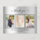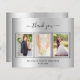 Fügen Sie 3 Ihrer eigenen Fotos und ein Dankeschön Ihre Notiz. Ein silbermetallischer Hintergrund mit schwarzem Text und Rahmen. Der Text: Vielen Dank auf der Vorderseite und Ihre Namen auf der Rückseite sind mit einem stilvollen handgeschriebenen Skript mit Swashes geschrieben.