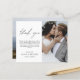 Budget Hochzeit Dankeschön Karten, die ein Foto auf der Vorder- und Rückseite haben. Die Dankeschön-Karten enthalten eine moderne, handgeschriebene, kursive Schriftzeichen-Typografie, die elegant, einfach und modern nach Ihrer Hochzeitsfeier zu benutzen sind.