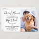Lass deinen besten Hund, um deine Hochzeit mit diesem modernen und eleganten 'Hund der Ehre' verkünde ich 'My Humans Get Married' Haustier Hund Save the Date Postkarten. Diese Hochzeitseinladungen müssen als übergroße Postkarten verschickt werden, sodass es zu normalen Portogebühren kommen kann, sie aber keinen Umschlag oder eine Rücksendeadresse benötigen. Passen Sie mit Ihrem Lieblings-Verlobung-Foto, Hundes-Foto, oder Foto mit dem Hund , und personalisieren Sie mit Namen, Datum und Hochzeitsort. Die Einladungen zur Hochzeit sind ein Muss für Hundefreunde und Hundemütter! COPYRIGHT © 2020 Judy Burrows, Black Dog Art - Alle Rechte vorbehalten. Budget Hochzeitshund Foto speichern Datumskarten