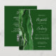 Der links Rand dieser eleganten, modernen Hochzeitseinladung besticht durch einen Jäger-grünen Aquarellstreifen, der mit Imitaten aus silberem Glitzer bestickt ist. Der anpassbare Text kombiniert Handschrift, Copperplate und kursiv Schriftart in hellsilbergrauer Farbe auf einem Jäger-grünen Hintergrund. Die Rückseite bietet Platz für Hochzeitsdetails auf einem soliden grünen Hintergrund, zusammen mit einem QR-Code können Gäste scannen, um Ihre Website und UAWG.